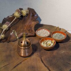 Özel olarak Lara Karma tarafından ürettirilen ana malzemesi bakır olan ürünümüz yıkanabilir özelliğe sahiptir. İçerisinde Reçine Tütsü Çeşitleri yakıp Tütsüleme işlemi yapacağınız gibi, konik tütsülerinizi kullanmak içinde uygun bir tütsülüktür. El işçiliği ile üretilmiştir.