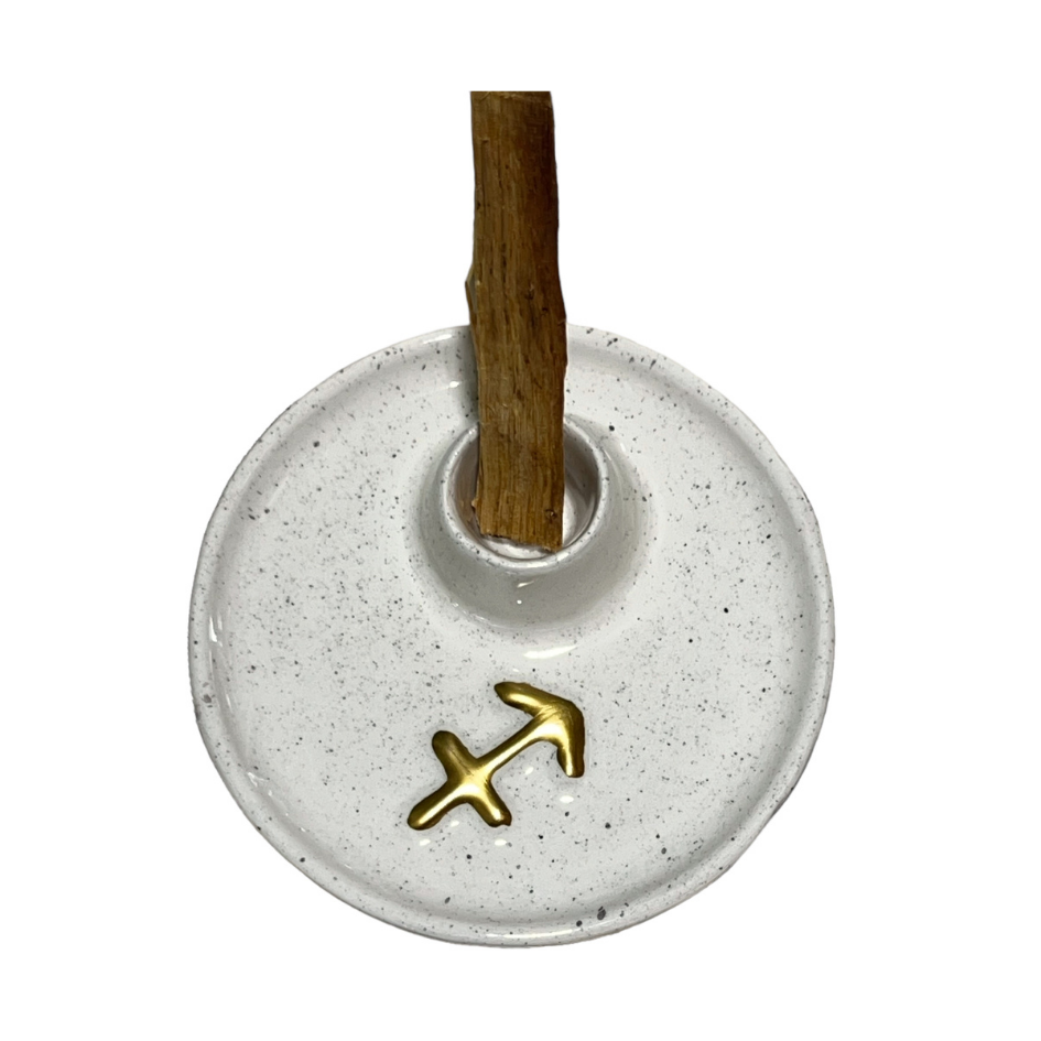 Seramik Burç Yay Sembollü Tütsülük (1 adet Palo Santo hediyeli)