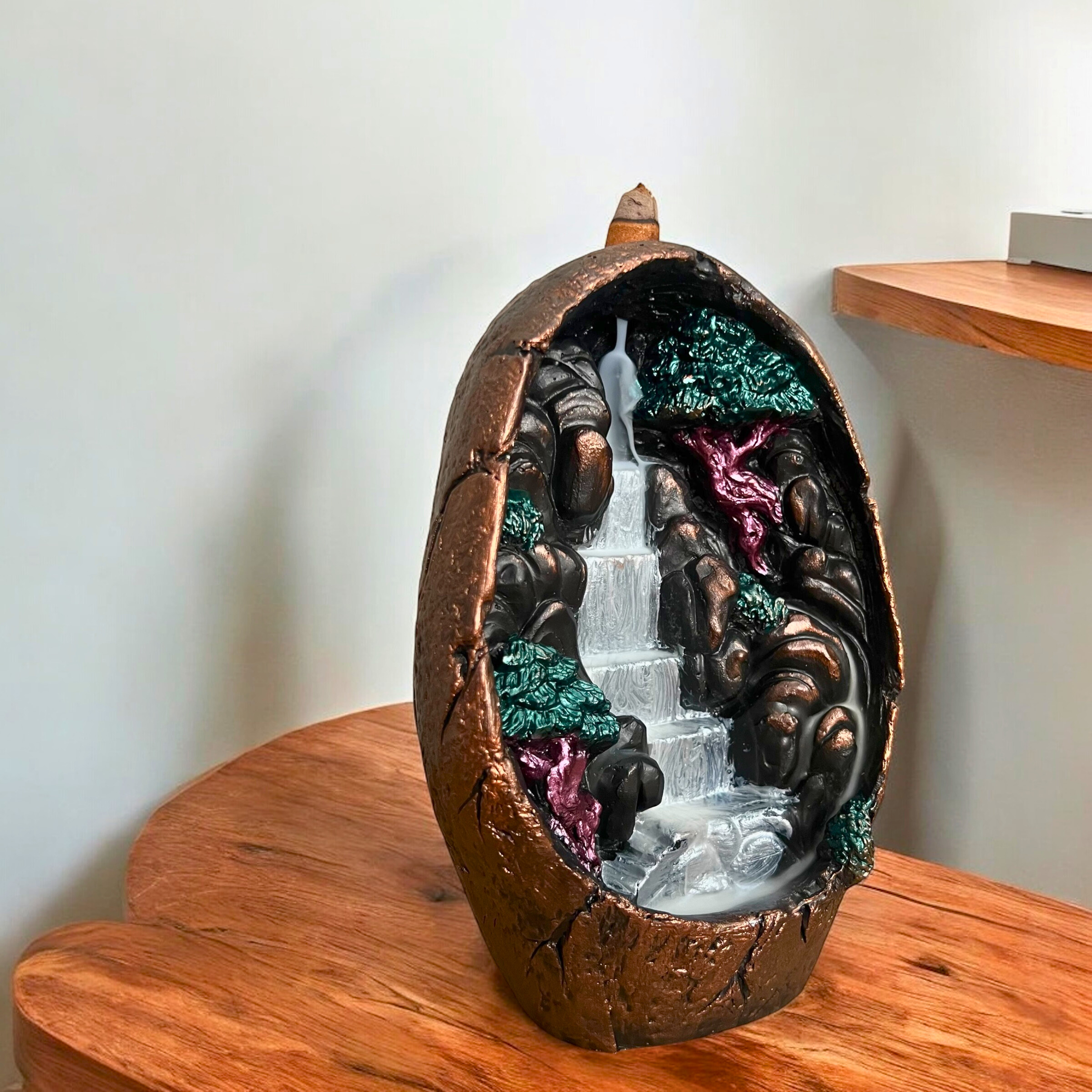 Ters akışlı tütsü yerleştirildiğinde, duman ağır ağır aşağıya süzülerek bir şelale gibi akar…